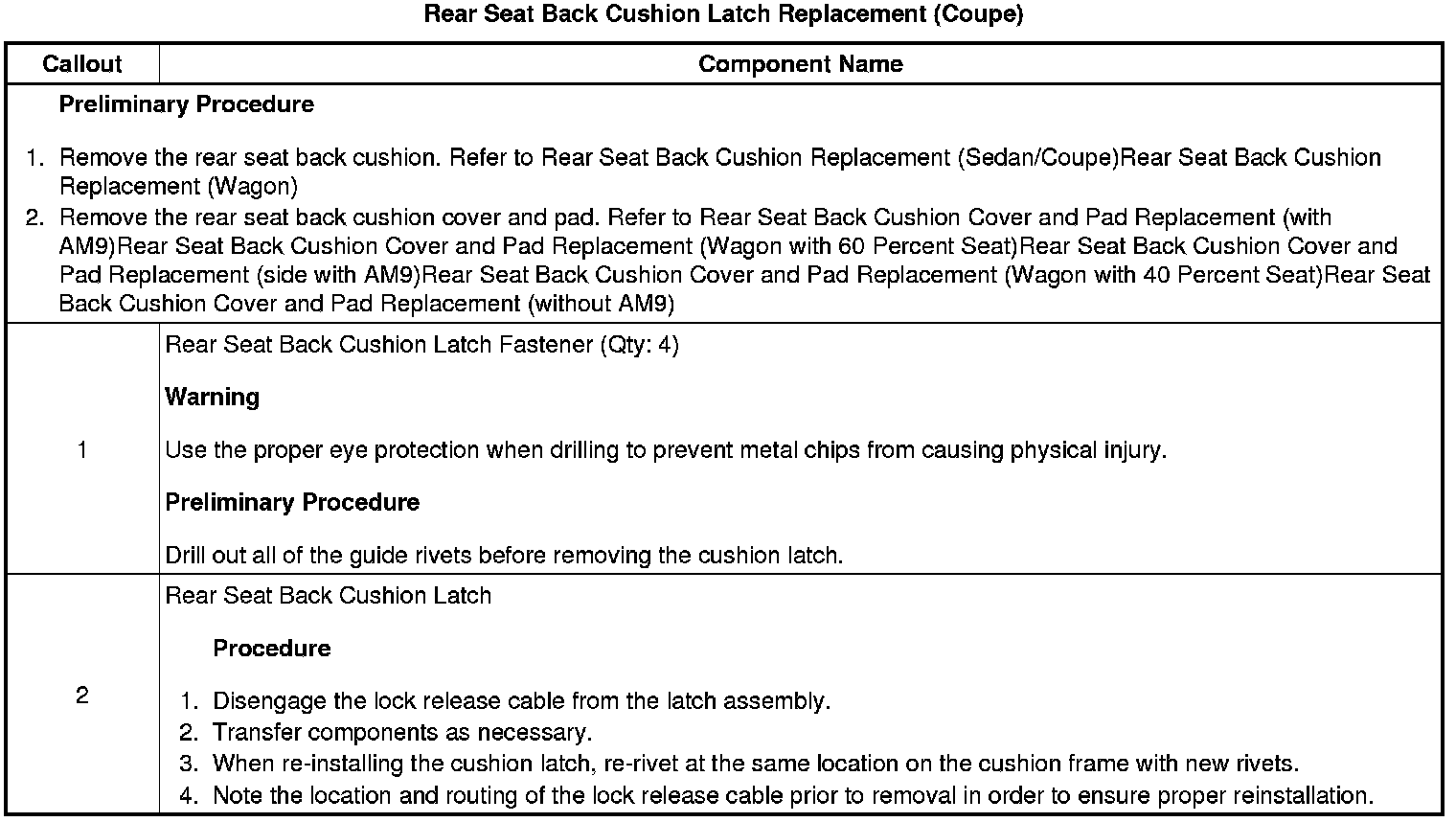 Rear Seat Back Cushion Latch Replacement (Coupe)