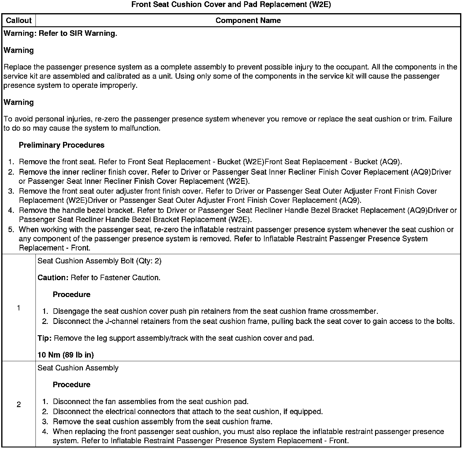Front Seat Cushion Cover and Pad Replacement (W2E)