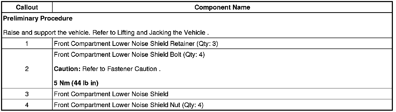 Front Compartment Lower Noise Shield Replacement (Rear Wheel Drive)