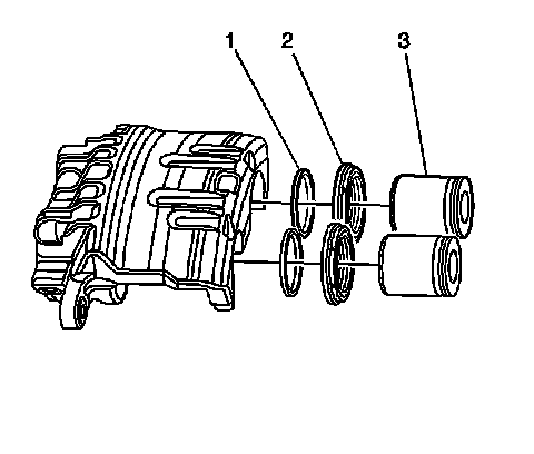 4. Lubricate the new piston seals (1) with Delco Supreme 11(R), GM P/N 12377967 (Canadian P/N 992667) or equivalent DOT-3 brake fluid from a clean, sealed brake fluid container.
