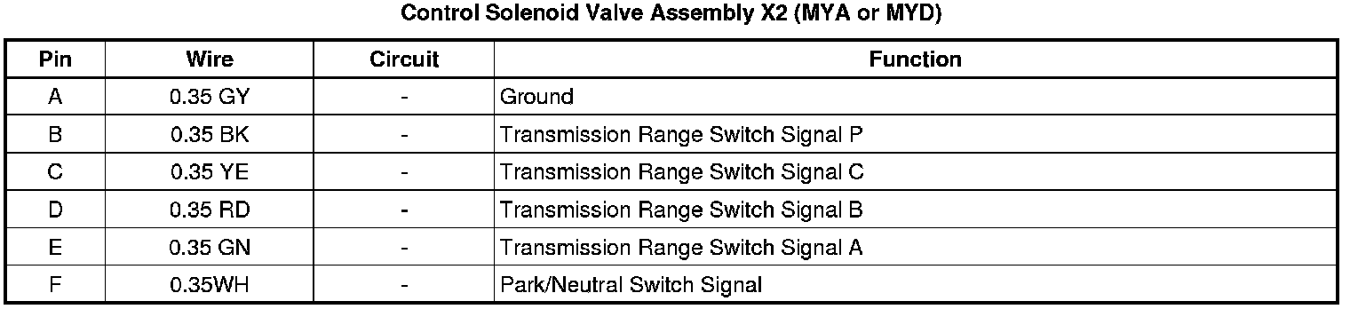 Control Solenoid Valve Assembly X2 (MYA or MYD)