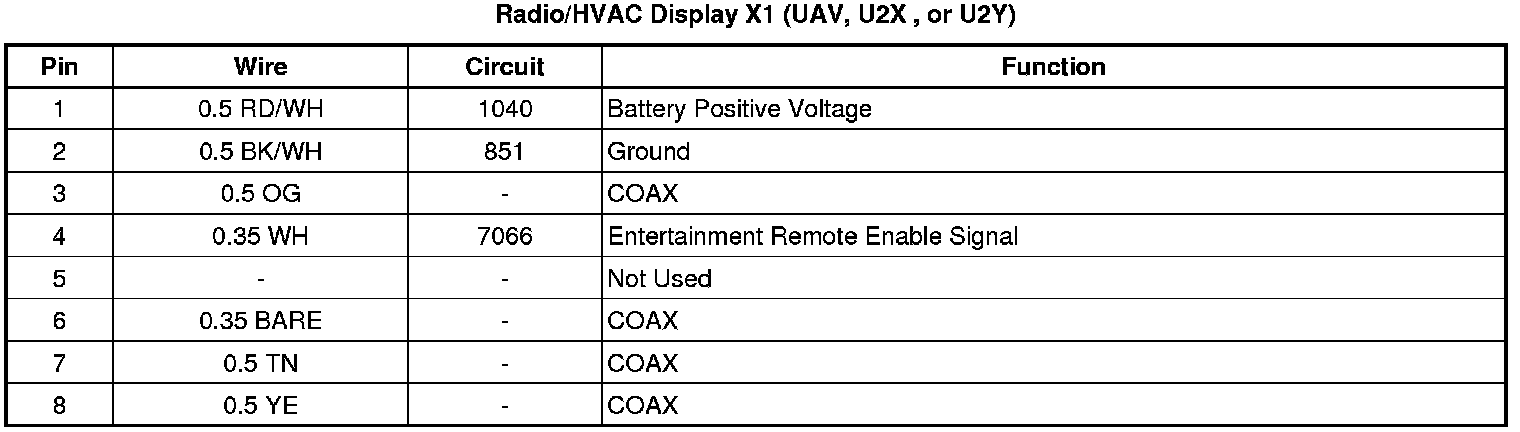 Radio/HVAC Display X1 (UAV, U2X , or U2Y)