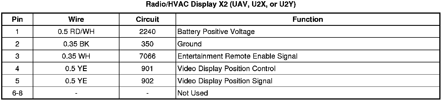 Radio/HVAC Display X2 (UAV, U2X, or U2Y)