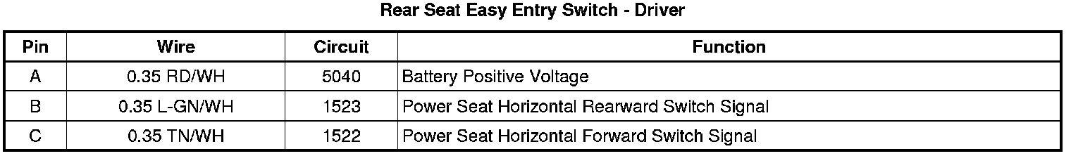 Rear Seat Easy Entry Switch - Driver