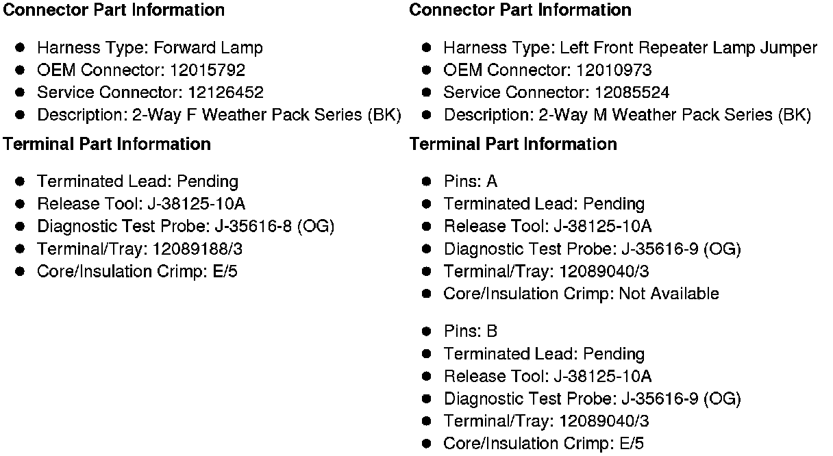 X110 Front End Lighting Harness to the Left Front Repeater Lamp Jumper Harness (T90)