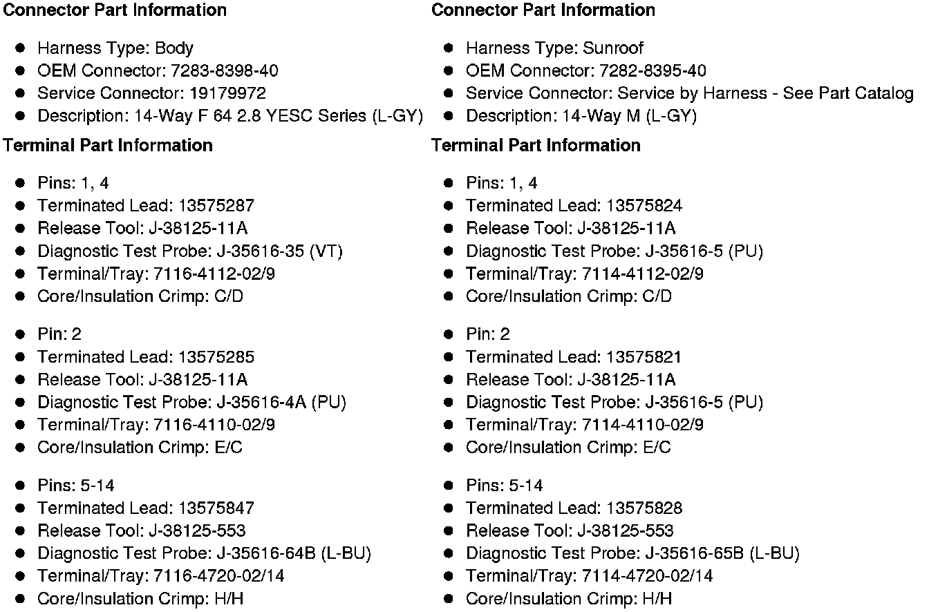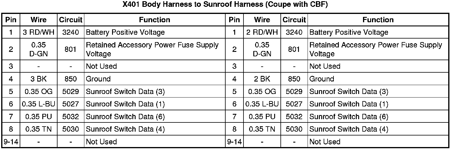 X401 Body Harness to Sunroof Harness (Coupe with CBF)