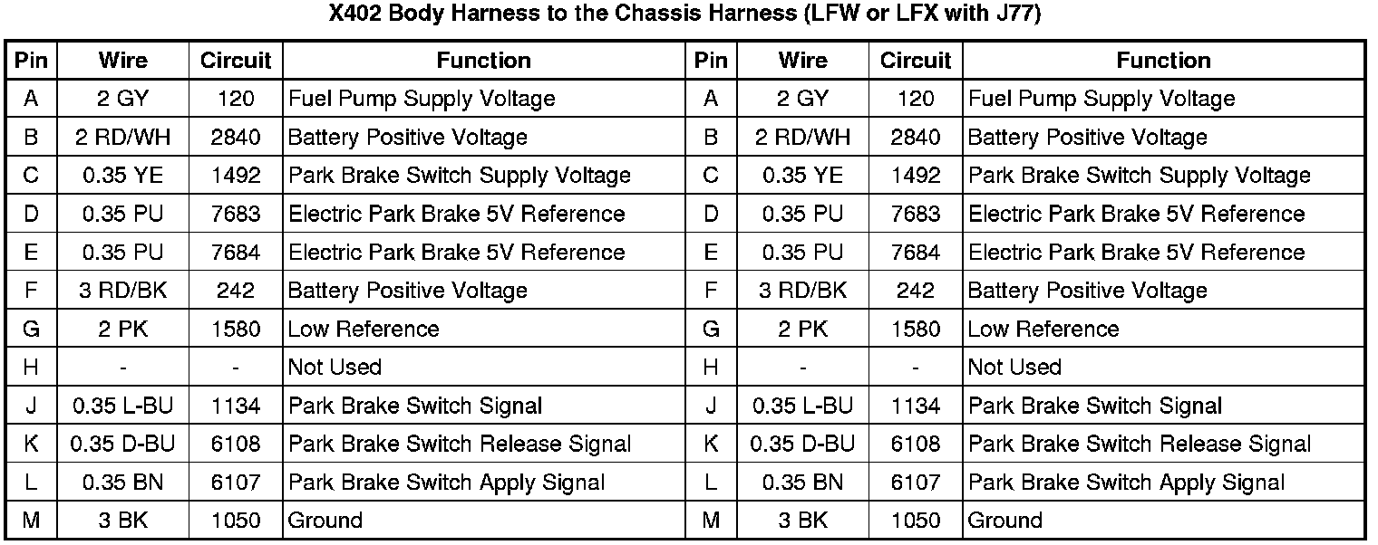 X402 Body Harness to the Chassis Harness (LFW or LFX with J77)
