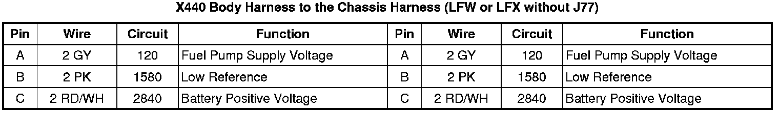 X440 Body Harness to the Chassis Harness (LFW or LFX without J77)