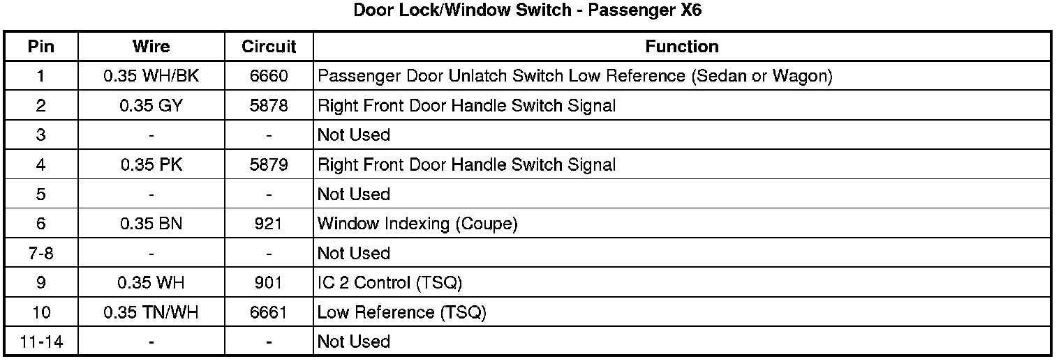 Door Lock/Window Switch - Passenger X6