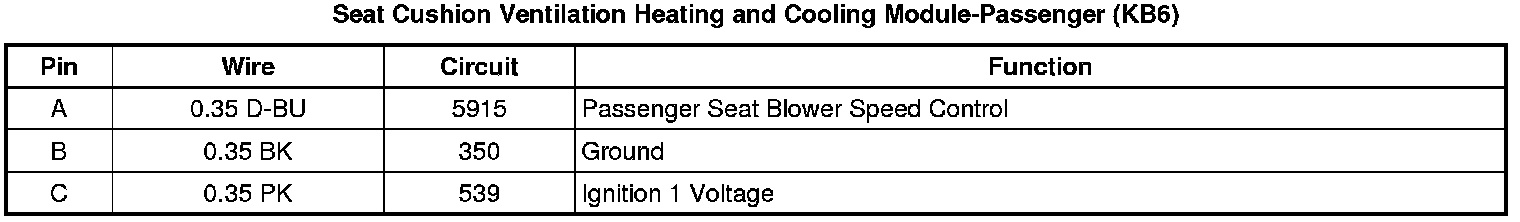 Seat Cushion Ventilation Heating and Cooling Module - Passenger (KB6)