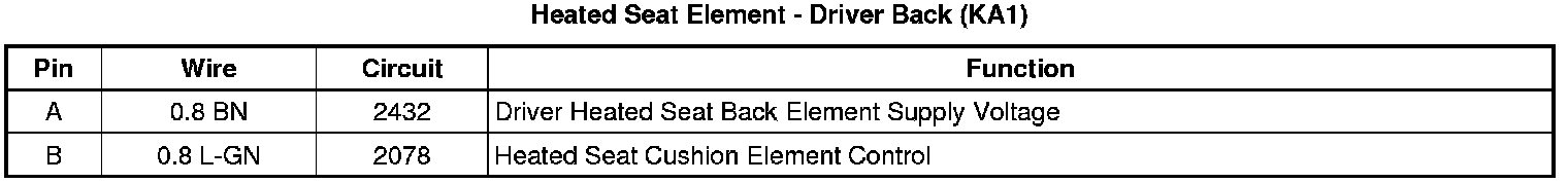 Heated Seat Element - Driver Back (KA1)