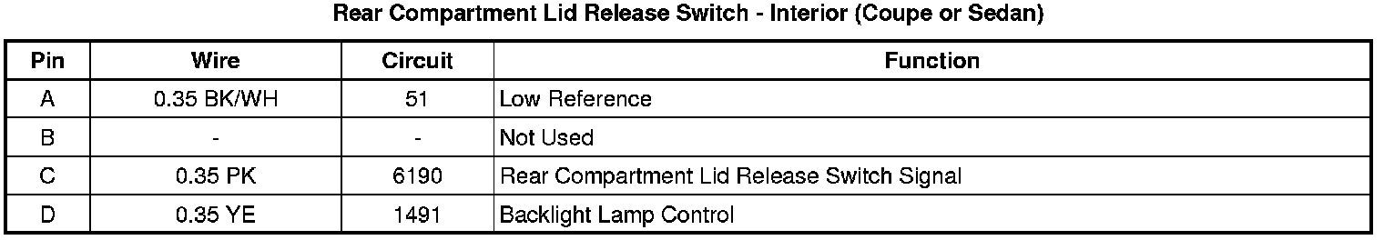 Rear Compartment Lid Release Switch - Interior (Coupe or Sedan)