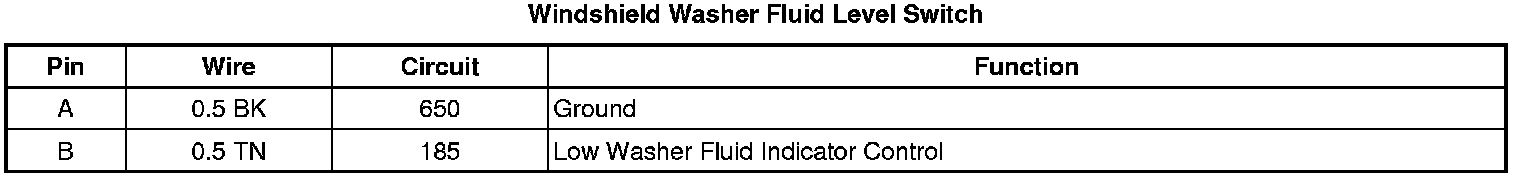 Washer Fluid Level Switch