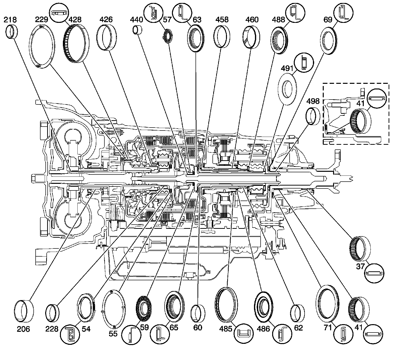 488 - Output Carrier Front Sun Gear Rear Thrust Bearing Assembly