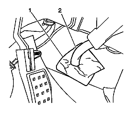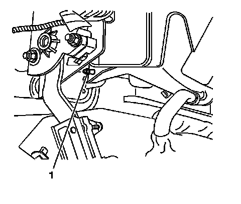 7. Install the lower left HVAC module mounting nut (1) and tighten to 9 Nm (80 lb in).