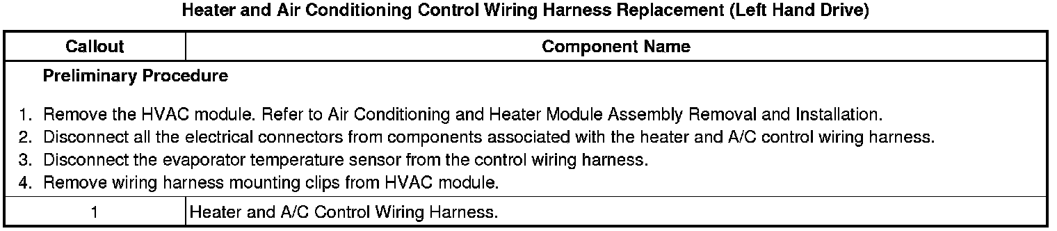 Heater and Air Conditioning Control Wiring Harness Replacement (Left Hand Drive)