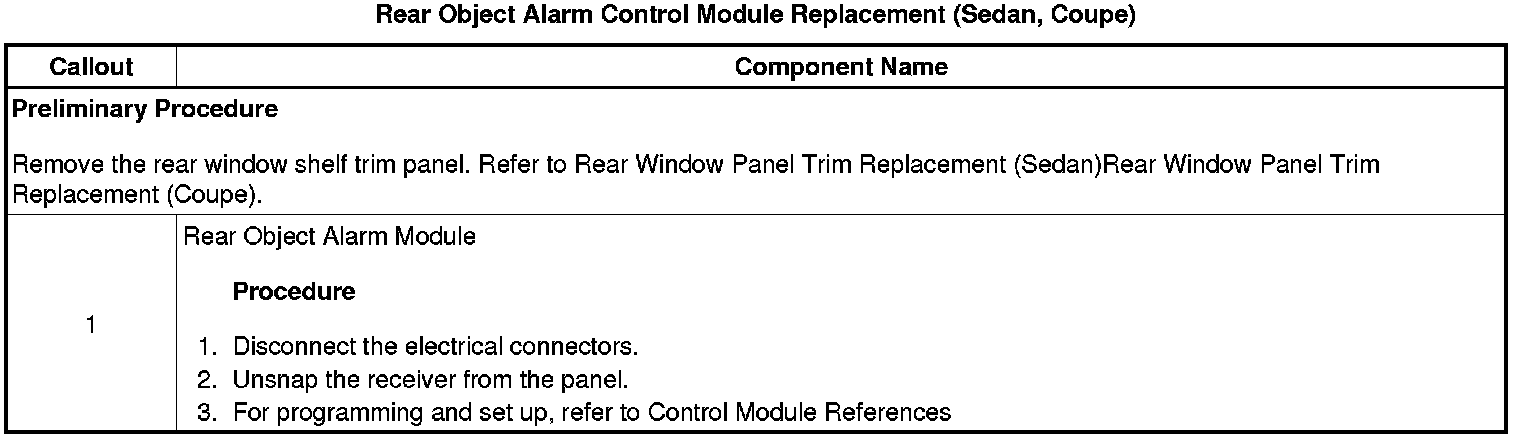 Rear Object Alarm Control Module Replacement (Sedan, Coupe)