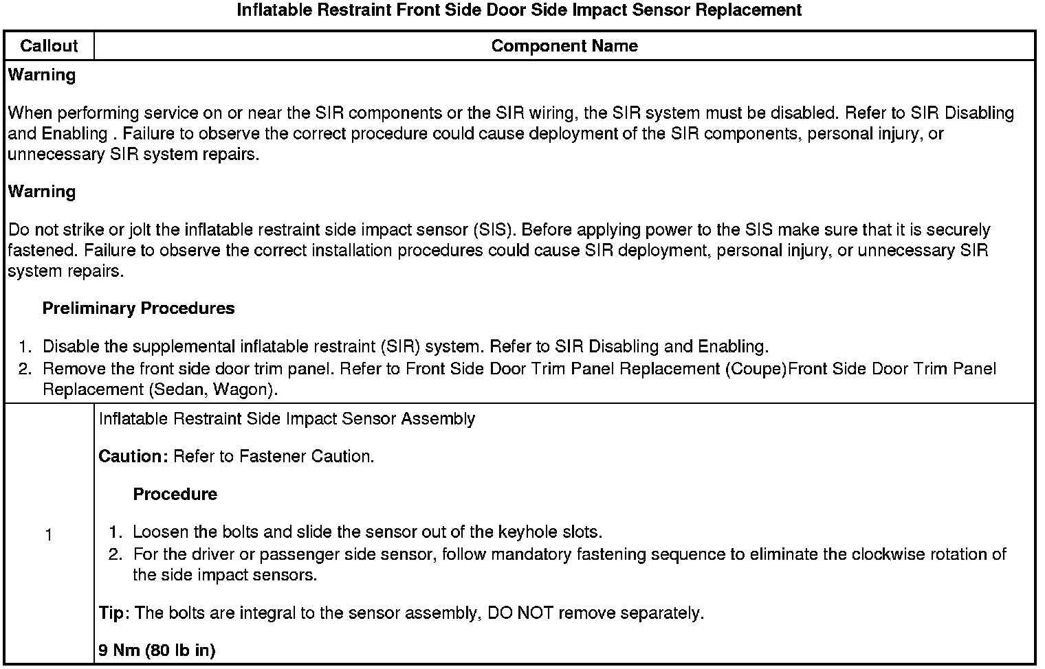 Inflatable Restraint Front Side Door Side Impact Sensor Replacement