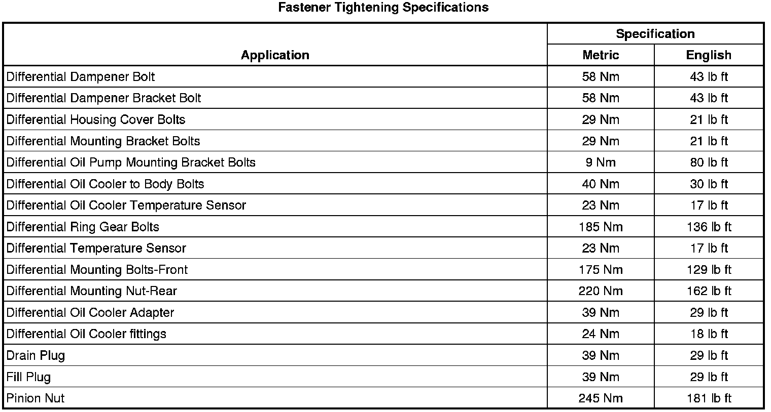 Fastener Tightening Specifications