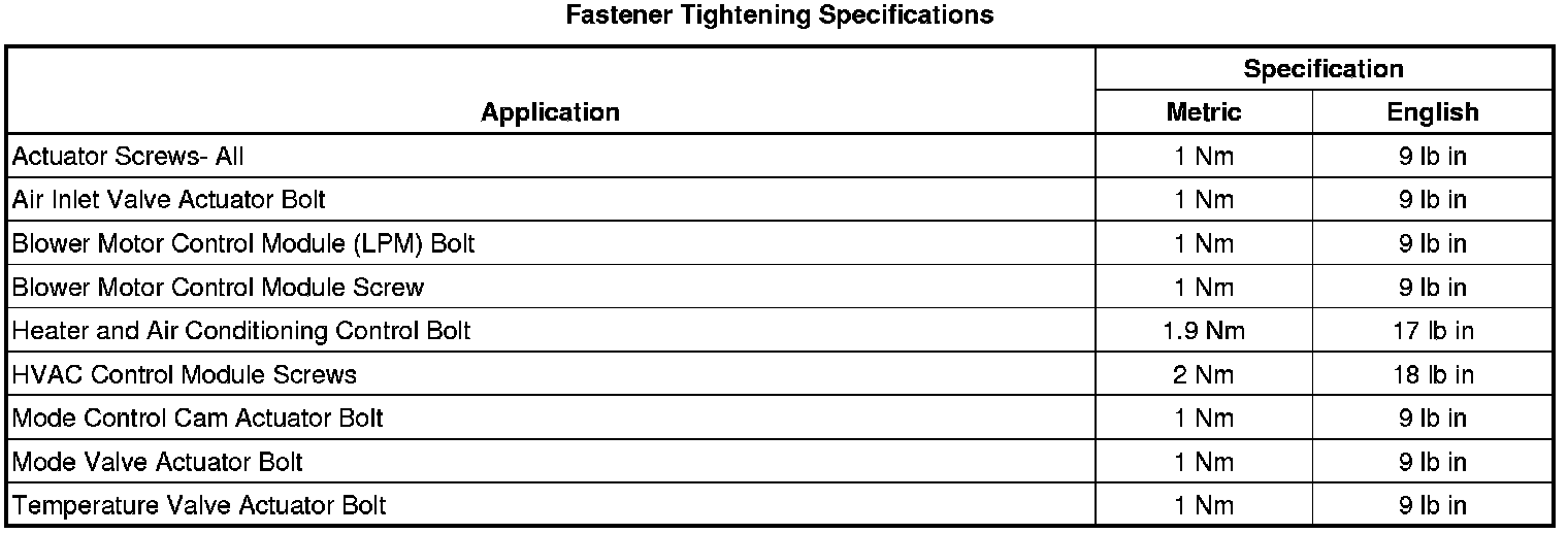 Fastener Tightening Specifications