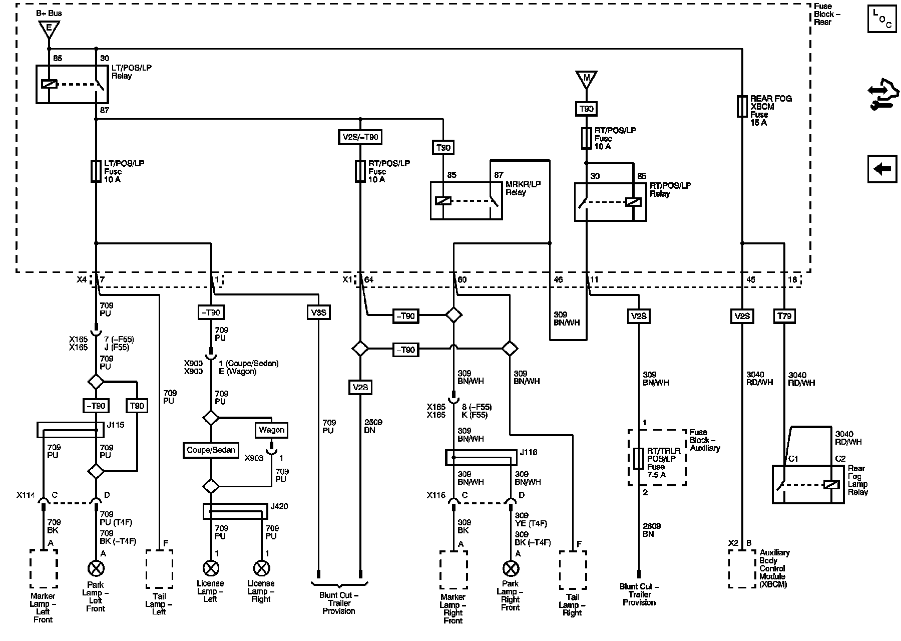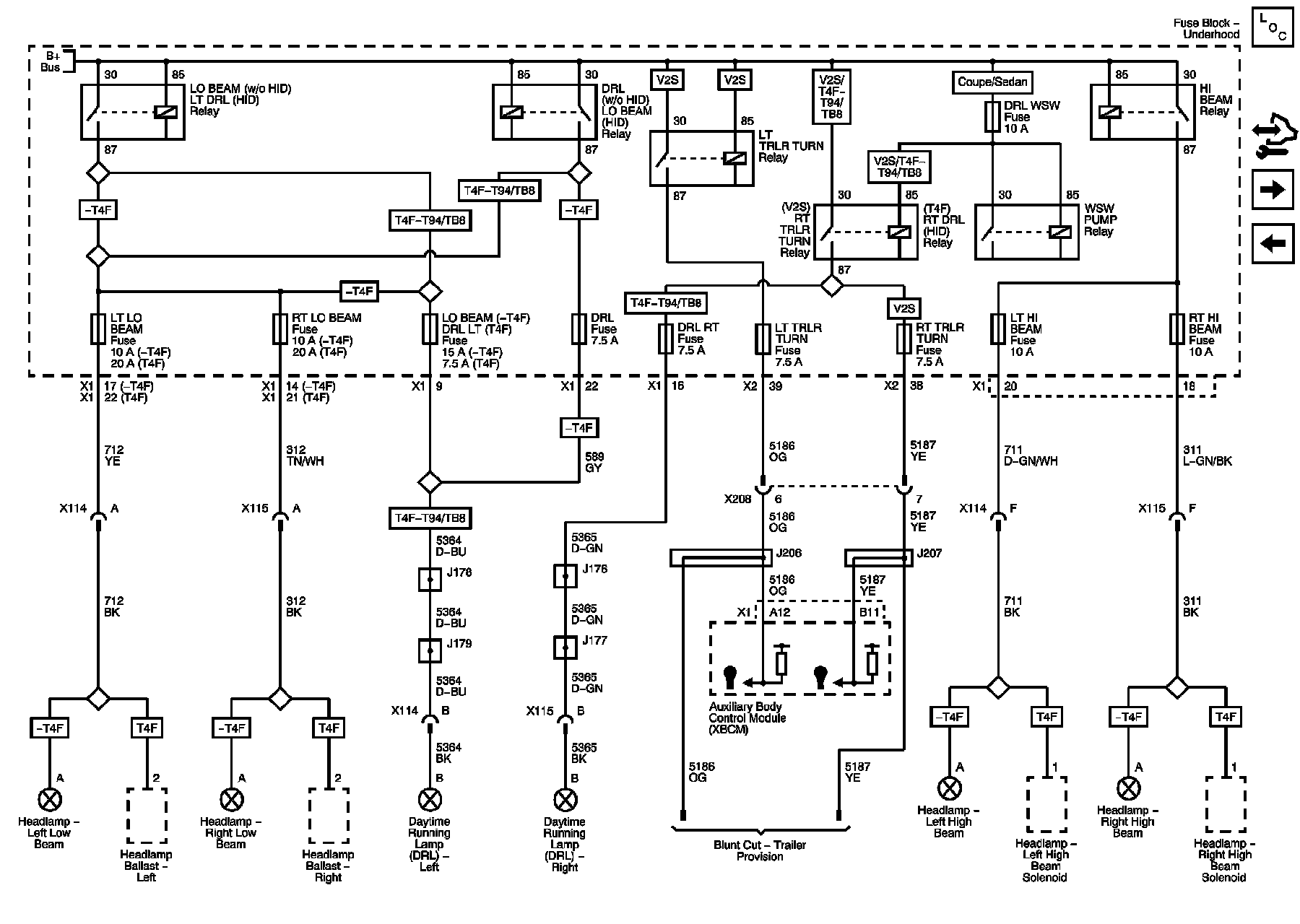 DRL, DRL LT, DRL RT, DRL WSW, LO BEAM, LT HI BEAM , LT LO BEAM, LT TRLR TURN, RT HI BEAM, RT LO BEAM, and RT TRLR TURN Fuses