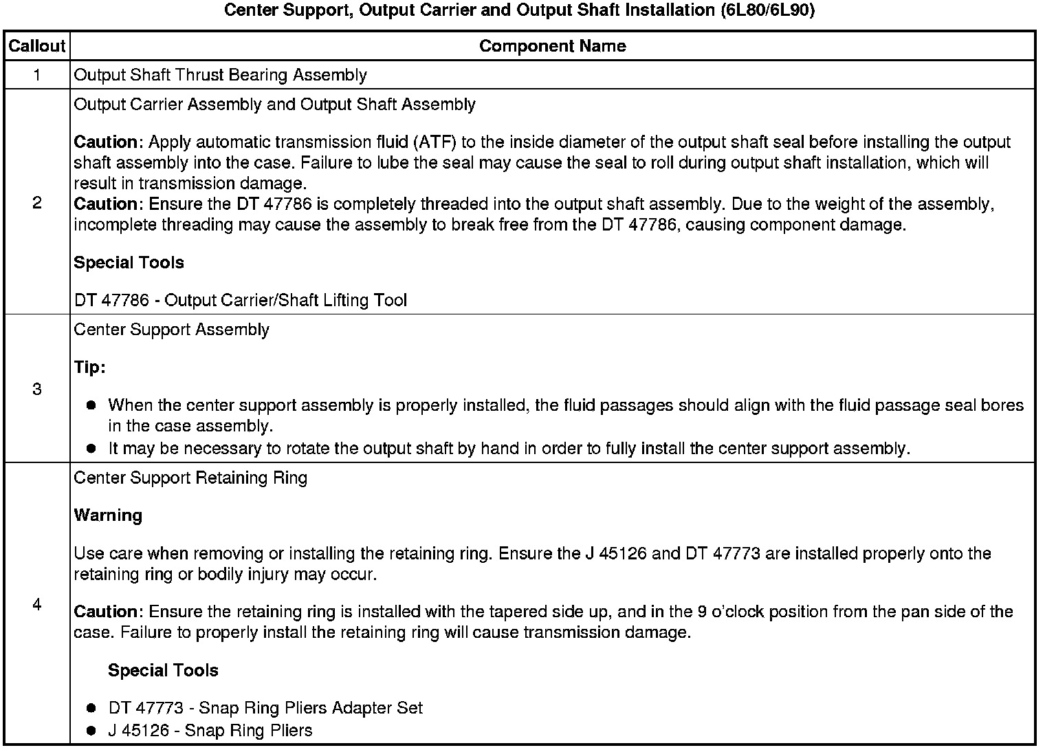 Center Support, Output Carrier and Output Shaft Installation (6L80/6L90)