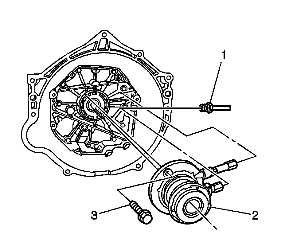 1. Install the clutch slave cylinder and bolts (3) and tighten to 13 Nm (115 lb in).