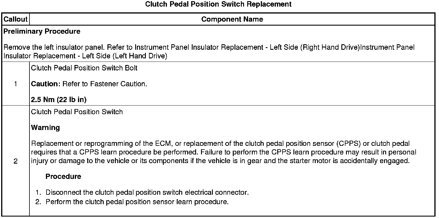 Clutch Pedal Position Switch Replacement