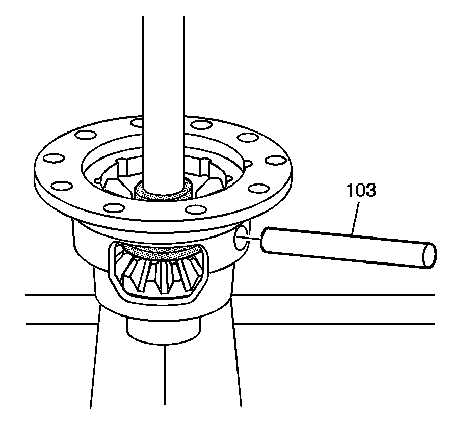 7. Install the differential pinion shaft (103) into the differential carrier.