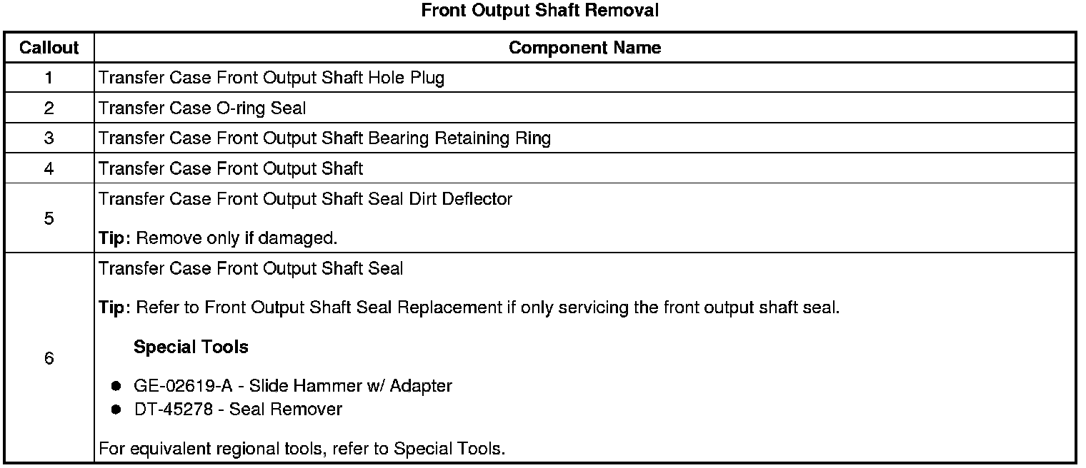 Front Output Shaft Removal