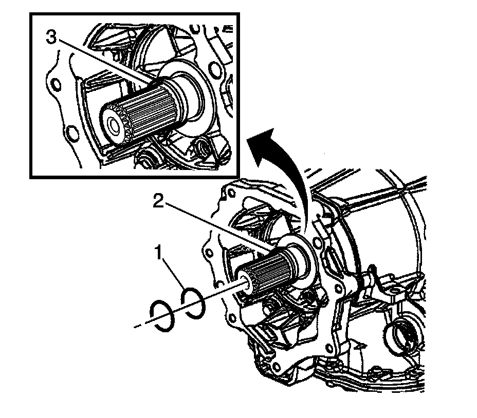 2. All 2011 model year transmissions have an O-ring (3) located in the groove of the output shaft. For second design applications, inspect the O-ring (3) for damage. Replace as required. Second design output shafts do not require installation of two additional O-rings.