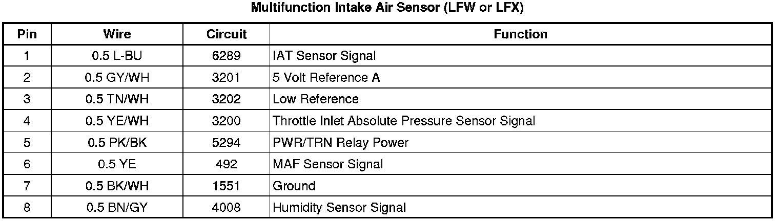 Multifunction Intake Air Sensor (LFW or LFX)