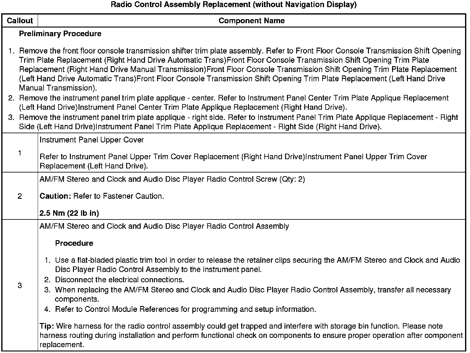 Radio Control Assembly Replacement (without Navigation Display)