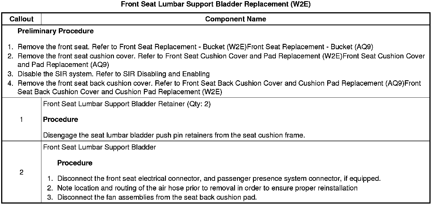Front Seat Lumbar Support Bladder Replacement (W2E)