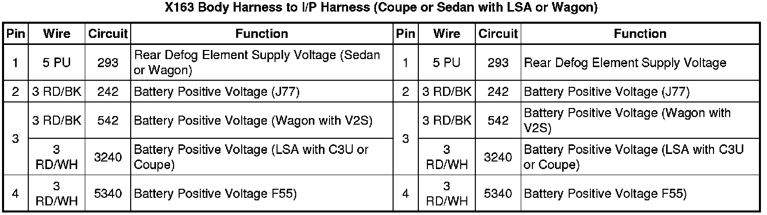 X163 Body Harness to I/P Harness (Coupe or Sedan with LSA or Wagon)