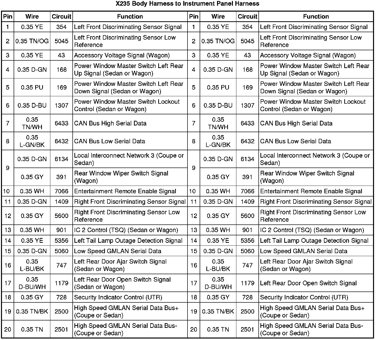 X235 Body Harness to Instrument Panel Harness