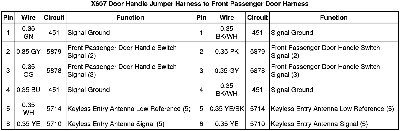 X607 Door Handle Jumper Harness to Front Passenger Door Harness
