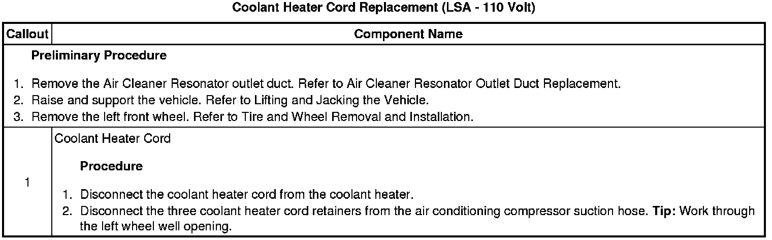 Coolant Heater Cord Replacement (LSA - 110 Volt)