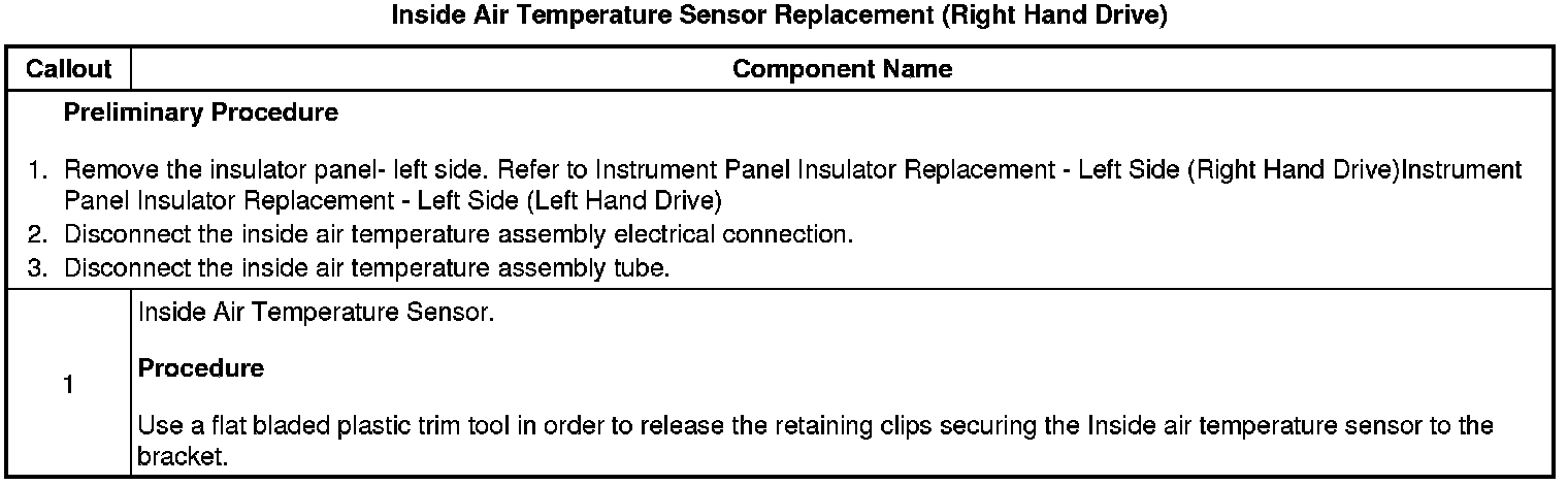 Inside Air Temperature Sensor Replacement (Right Hand Drive)