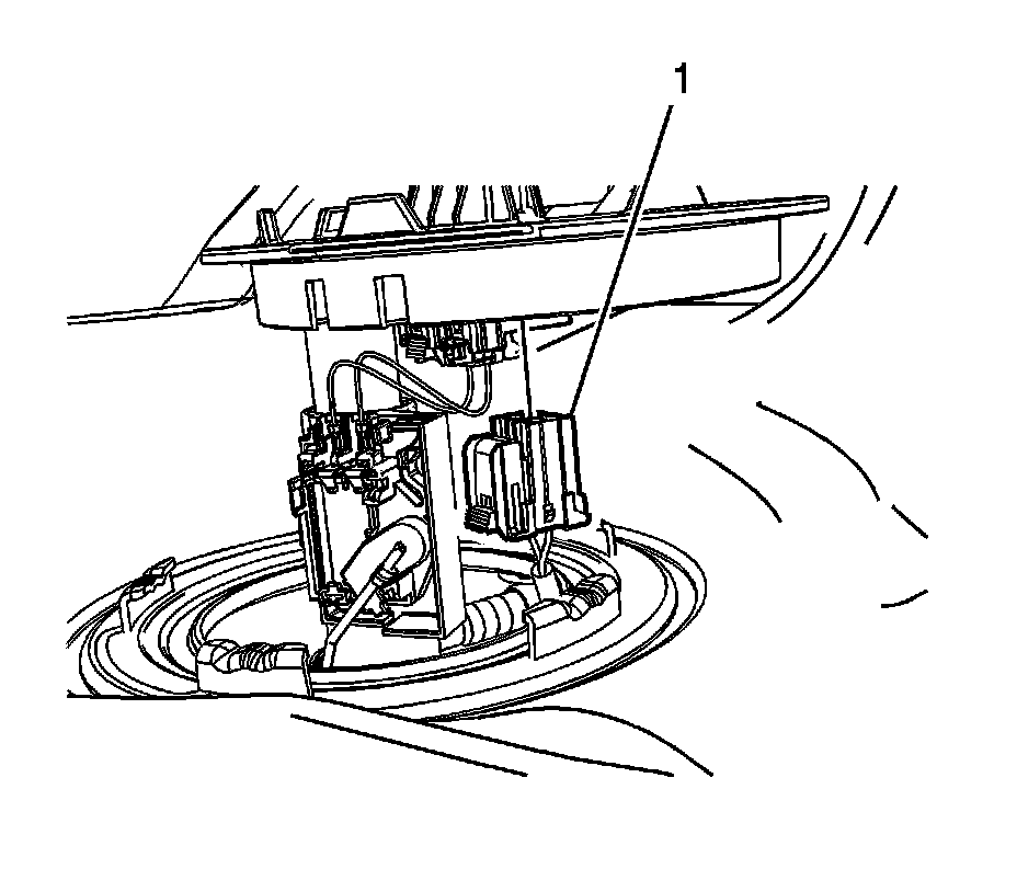 2. Release the interlock and disconnect the electrical connector (1) from the secondary fuel tank module. Position the connector and wire harness aside.