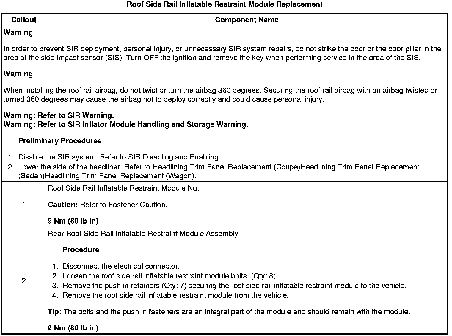 Roof Side Rail Inflatable Restraint Module Replacement