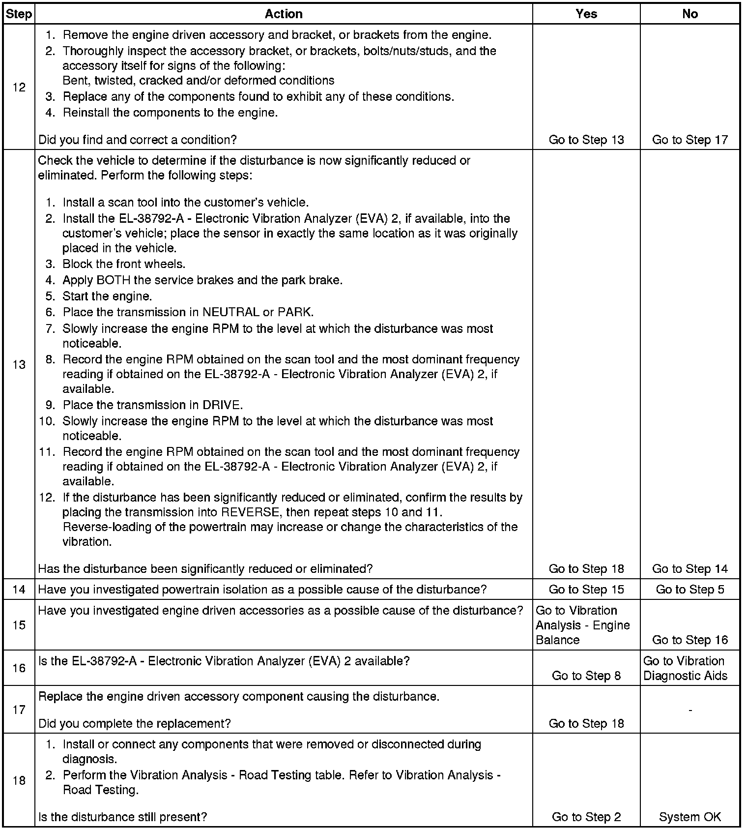 If a disturbance is still present, but the characteristics have NOT been altered, it is NOT likely that these component systems are acting as a transfer path for engine firing frequency or a first order engine disturbance.