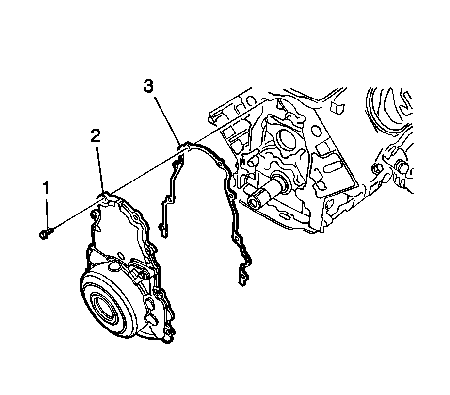 7. Remove the front cover (2) and gasket (3).