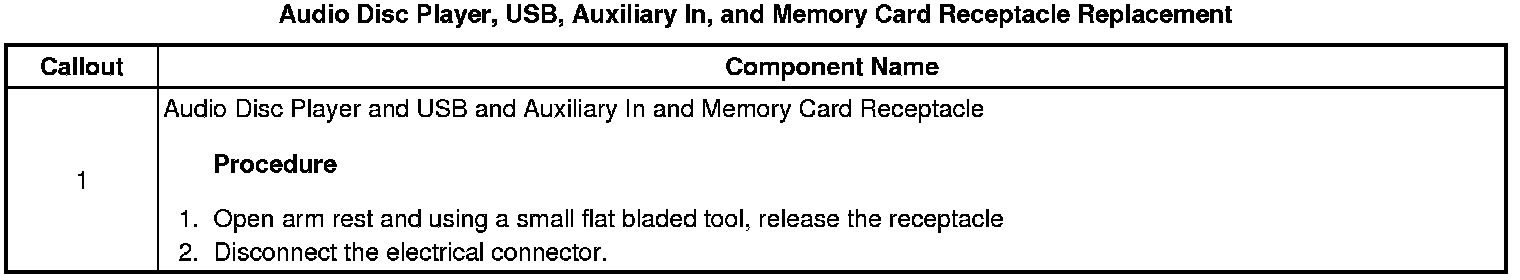 Audio Disc Player, USB, Auxiliary In, and Memory Card Receptacle Replacement