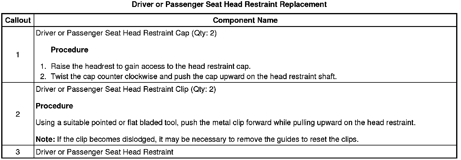 Driver or Passenger Seat Head Restraint Replacement