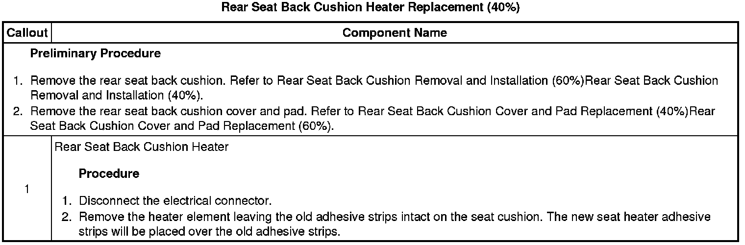Rear Seat Back Cushion Heater Replacement (40%)
