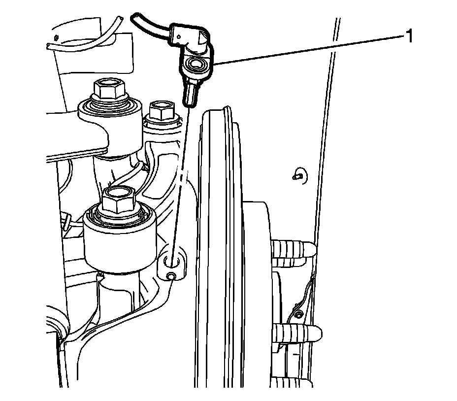 9. Install the wheel speed sensor bolt (1) and tighten to 9 Nm (80 lb in).