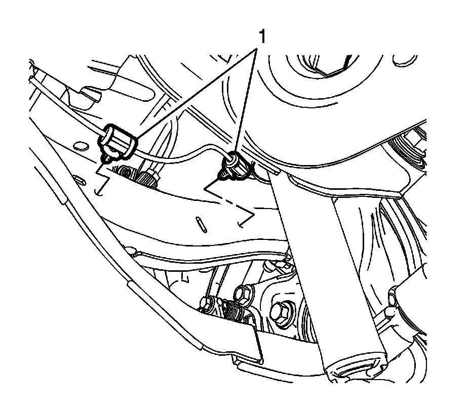 7. Release the wheel speed sensor harness clips (1) from the upper suspension arm.