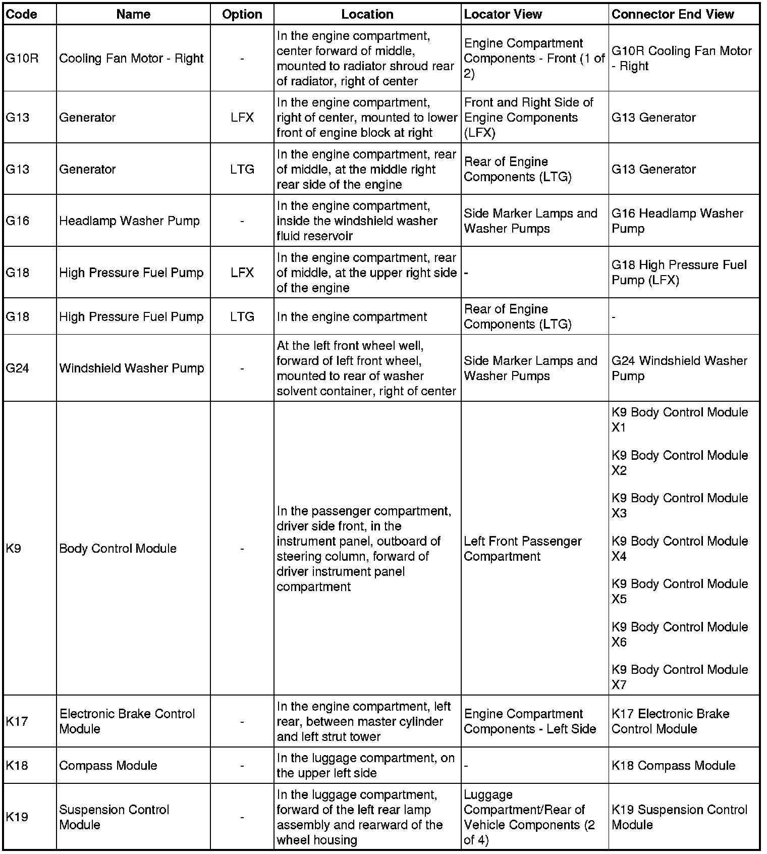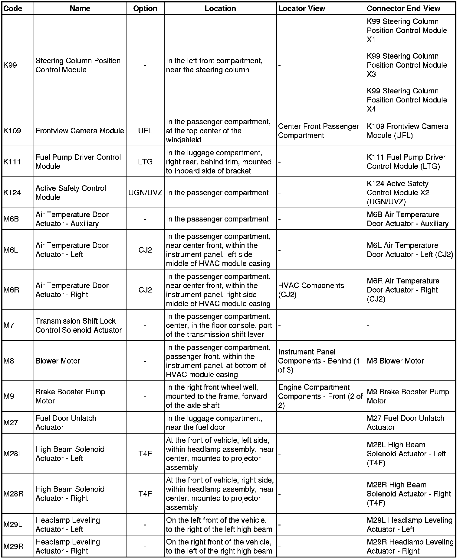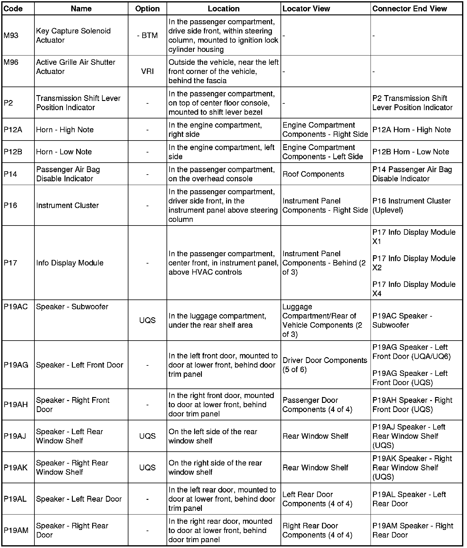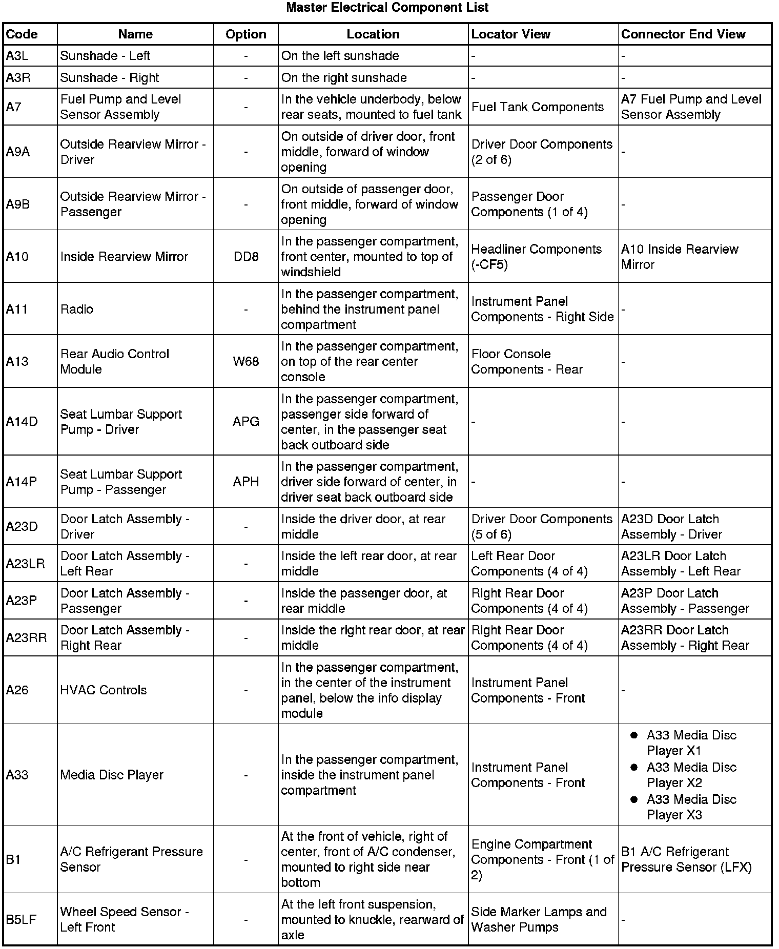 Master Electrical Component List