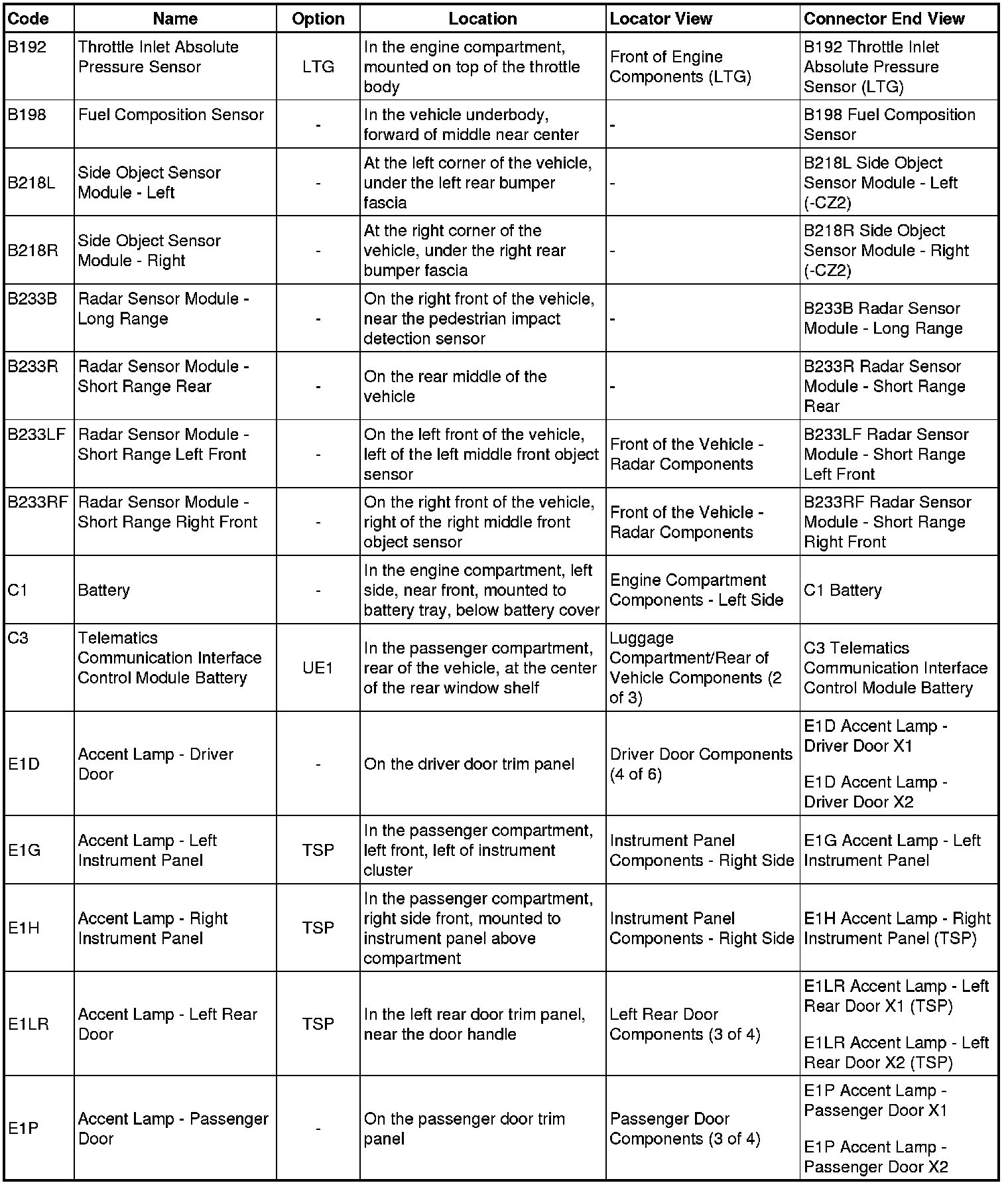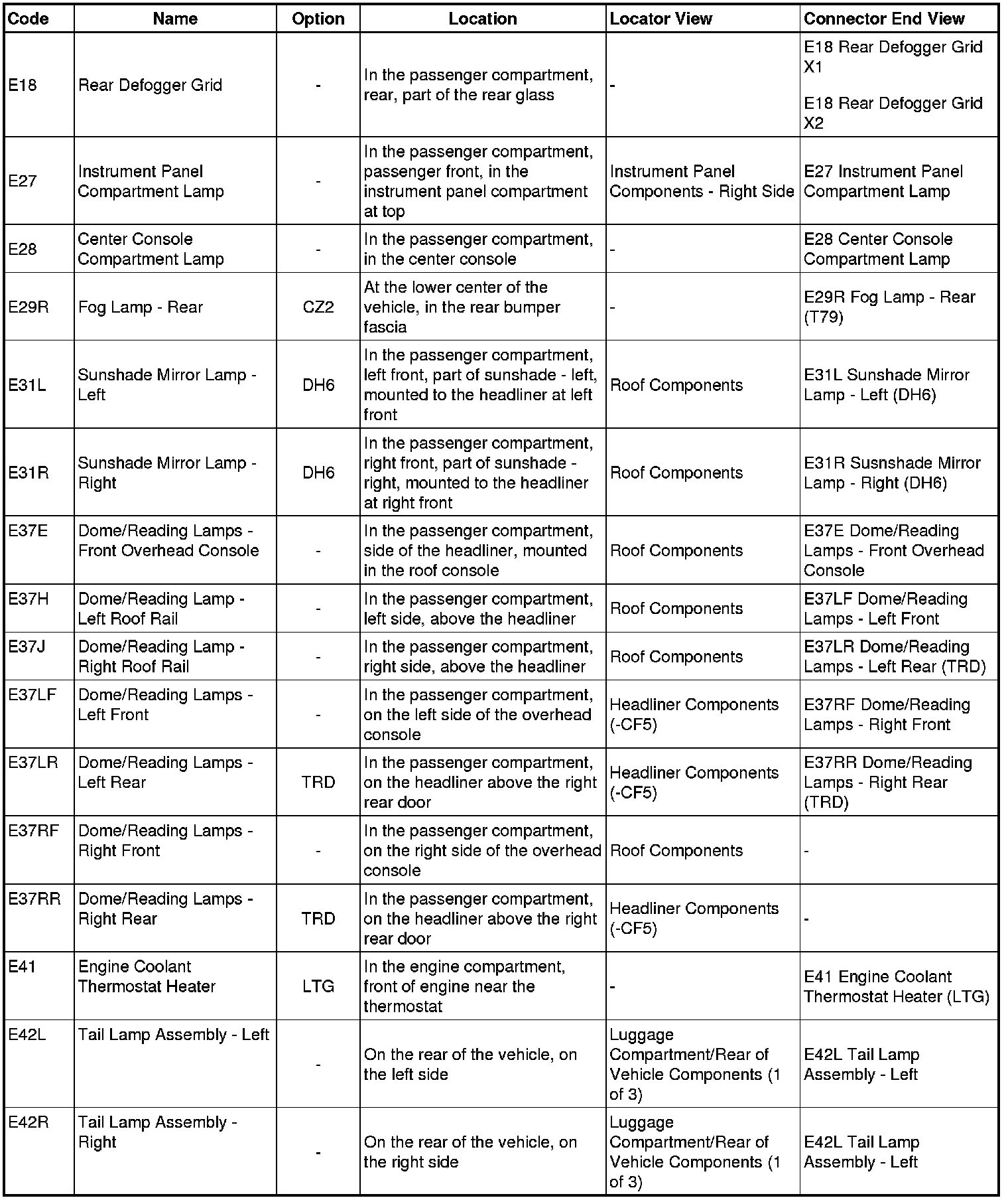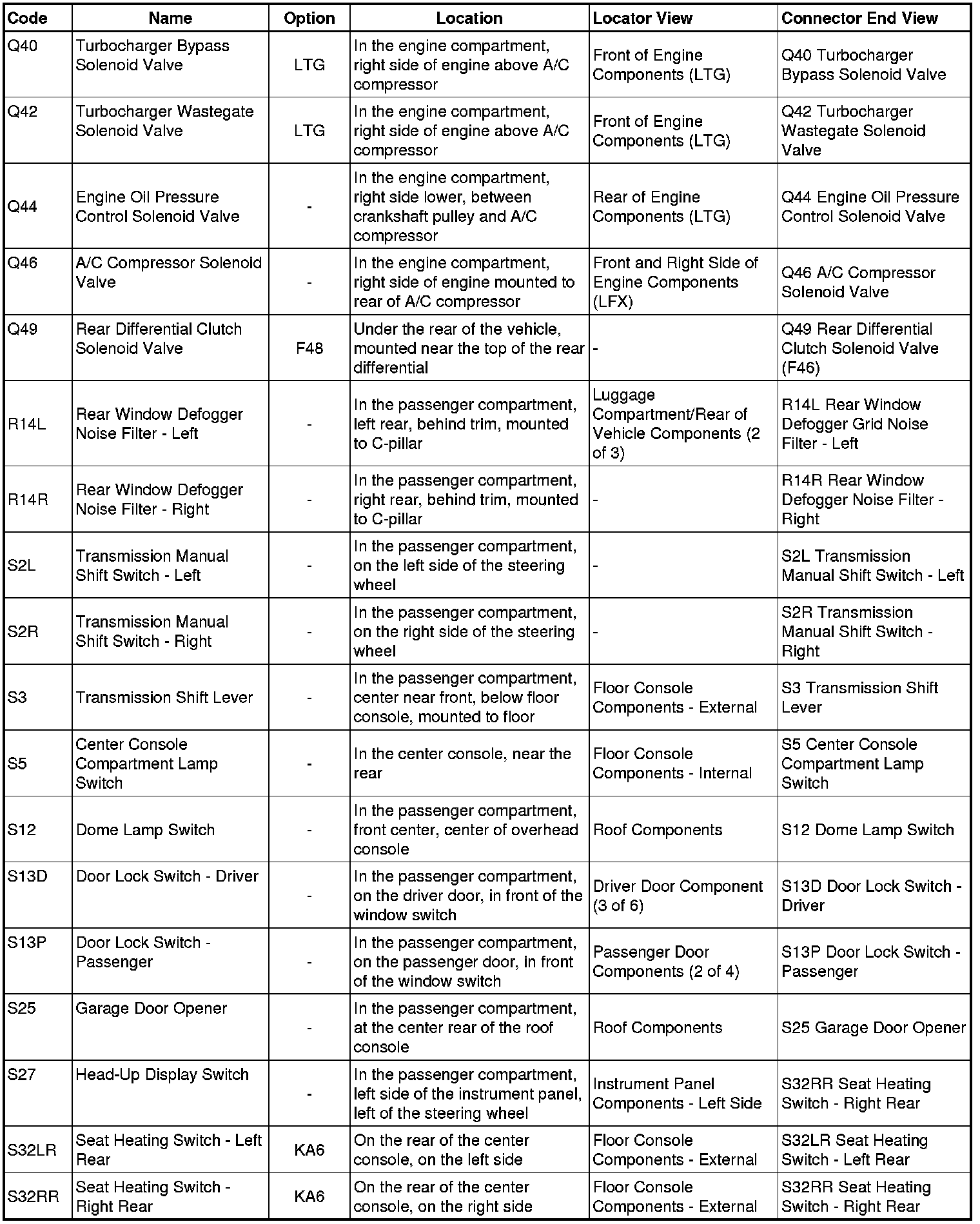 Master Electrical Component List